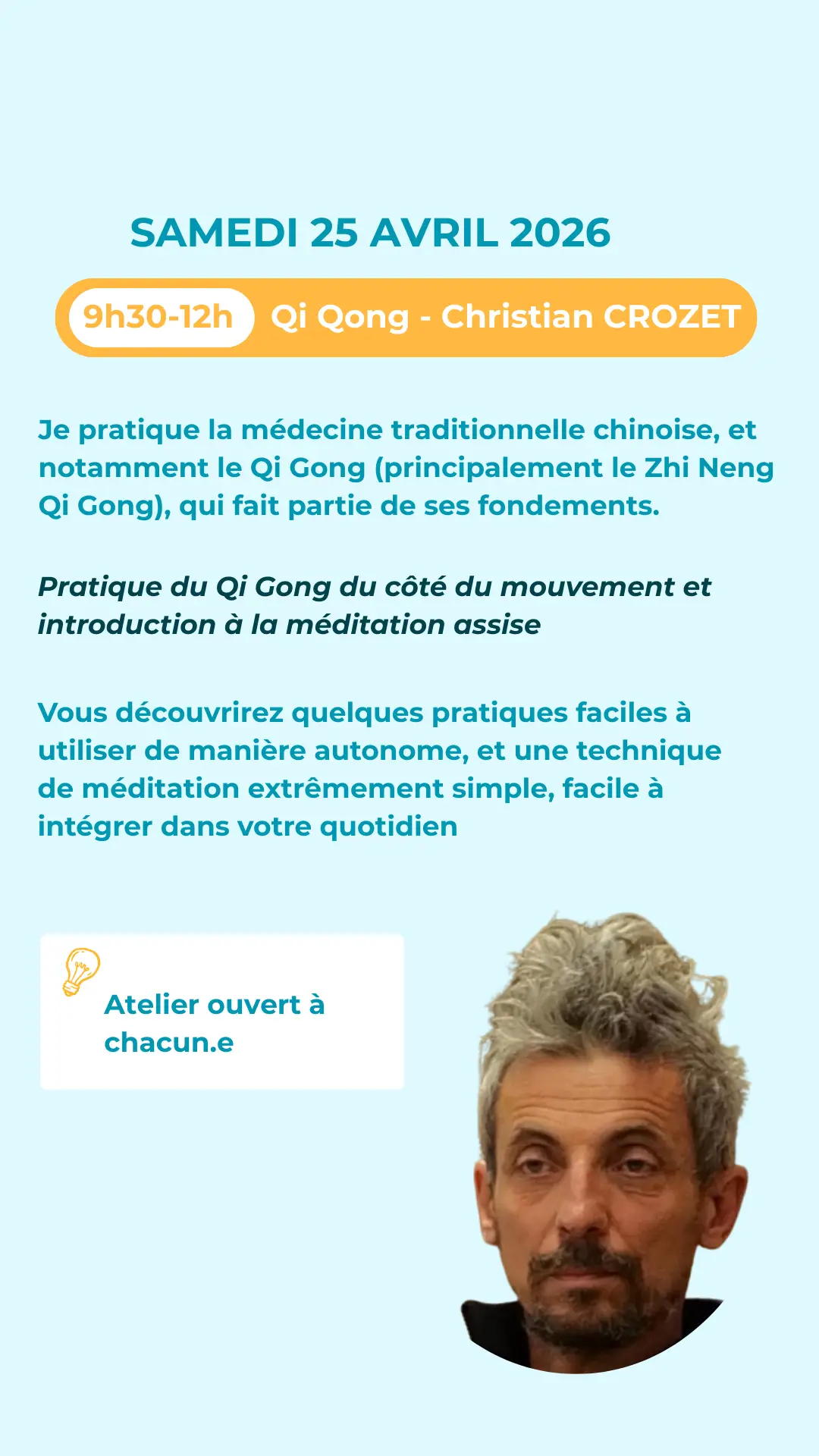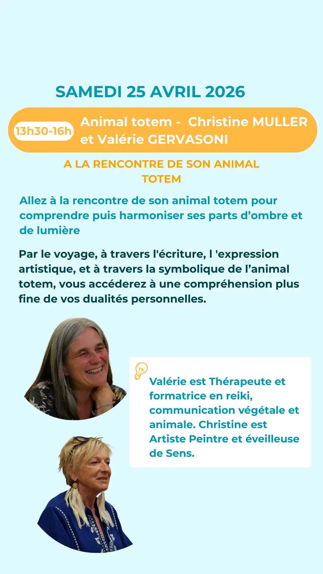 Les ateliers sont indépendants les uns des autres. Vous pouvez en choisir un ou plusieurs, selon vos envies.